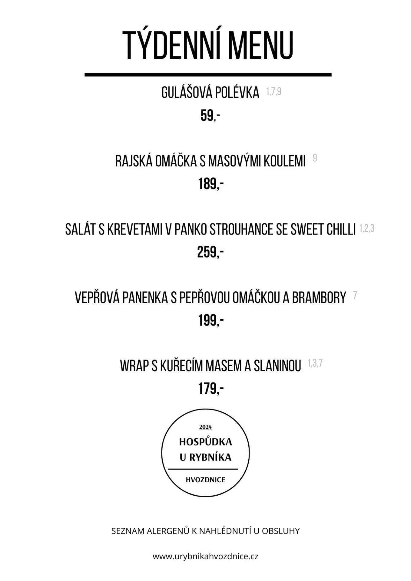 Seznam alergenů k nahlédnutí u obsluhy